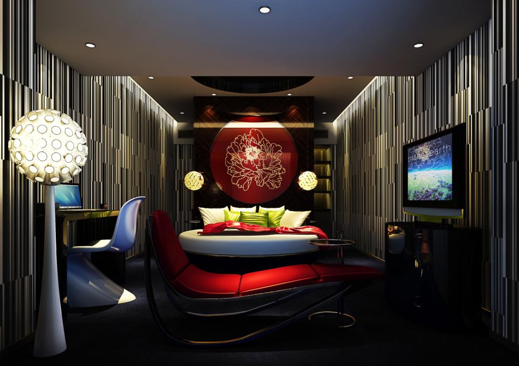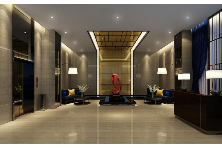 项目定位为特色商务酒店,装修设计上按四星级标准打造,面积为11000平米,酒店经营分两大板块,客房、茶楼。客房分为经济层、商务层、主题层。茶房有茶楼大厅与包间。公区设有大堂、大堂吧、商务中心、配套会议室。整体风格定位为现代奢华型酒店,设计手法简洁、现代,通过色彩的金色和蓝色突出其高贵、华丽感。根据酒店名字作为设计上轴线,元素用“花”的形态上作出提炼,运用到设计中。挂饰、地毯、装饰品都呼应了主题。其中主题层,设置了四种风格:浪漫式、性感式、日式、海边式四种主题来满足不同人的入住体验。茶楼部分设计上融入了东南亚的意境,卡座区有隐私性的同时,又不失与外空间的视觉享受,融入了大量的景观设计,让整个空间放松、休闲起来。